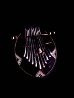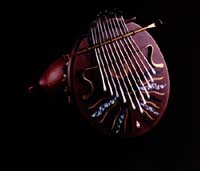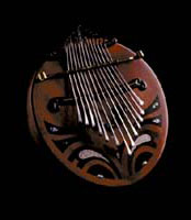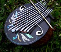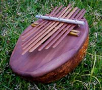 ボディーは瓢箪でアフリカ音階のチューニング全体をすり漆仕上げ。ビビリ音を入れた楽器。